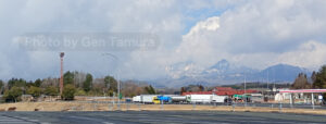 蒜山高原SAで休憩。昨年と同様、この辺りから山道の端に雪が残っていました。大山の眺めが雄大でした。