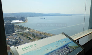 続いて、13時半、山陰合同銀行の最上階14階にある展望フロアに昇り、松江市街や宍道湖を見渡しました。