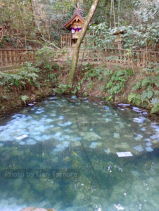 澄んだ水面を見下ろしますと、池底には数百枚はありそうな占い用紙が積もっていて殆ど真っ白でした。参拝者数が急増したことが一目瞭然で、改めて朝ドラ効果の大きさを実感しました。